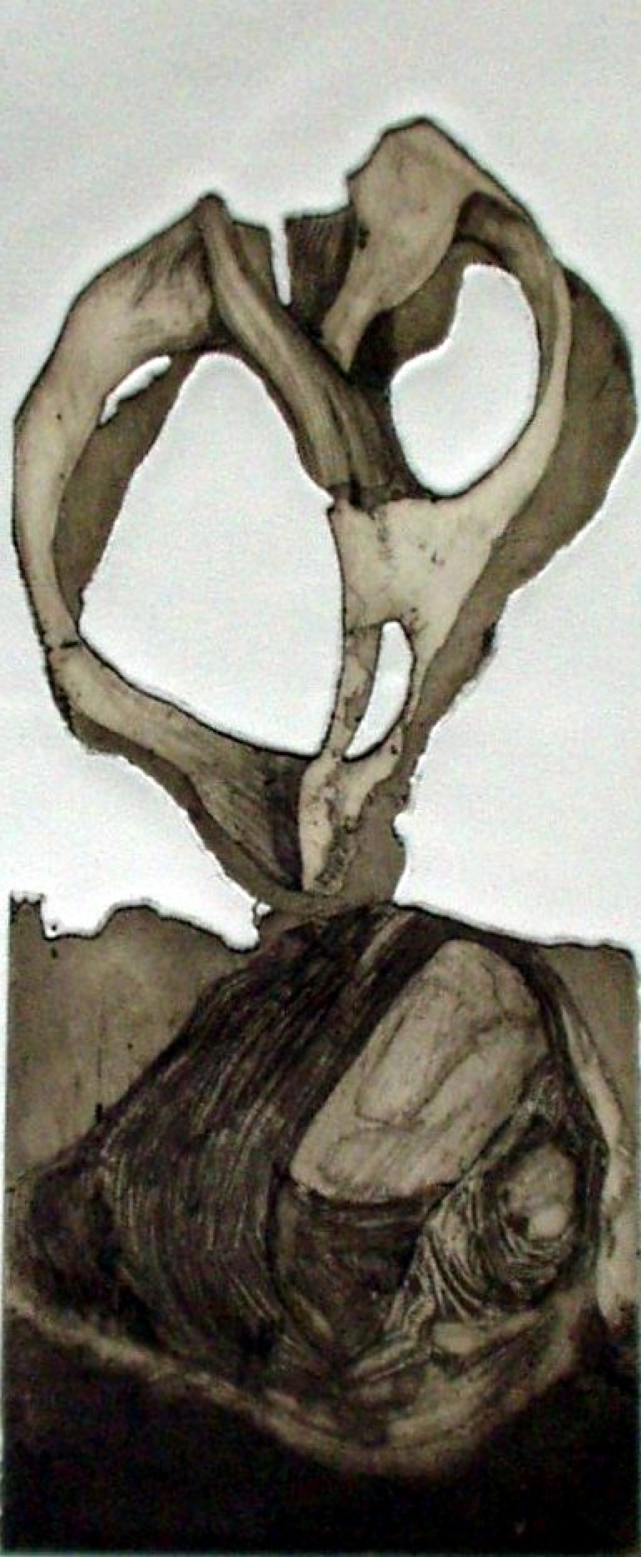 edition of 20 A very early etching based on shells I was picking up on the beach in Point Lookout, NY. The lower portion of this plate uses the white ground process described elsewhere. This plate was made in February of 1967. Exhibited: Several shows in the 70s.
