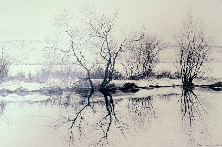 Tokaido#45, "Pond on Rte. 89", ballpoint pen,12"x18"