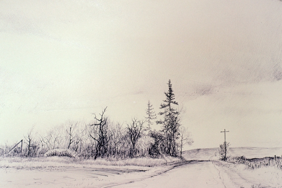 Tokaido#46, "Ruin at Betzler Rd.", ballpoint pen, 12"x18"
